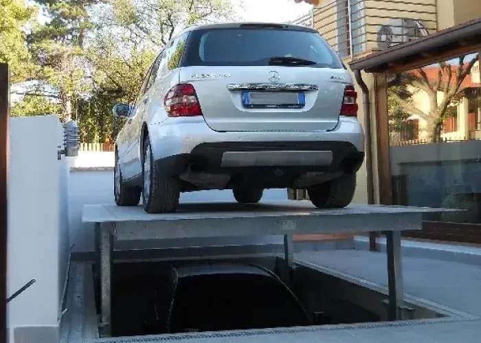 The overall compactness of the product reduces the space requirements to the barest minimum, and thus allowing several vehicles to be parked in a relatively small space. The pushbutton control panel can be installed in the most convenient position for controlling the lift depending on customer’s requirements. The platform has a front wheel stop bar set at the front edge of the platform.