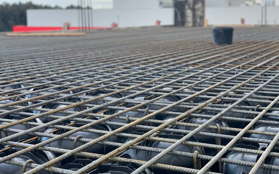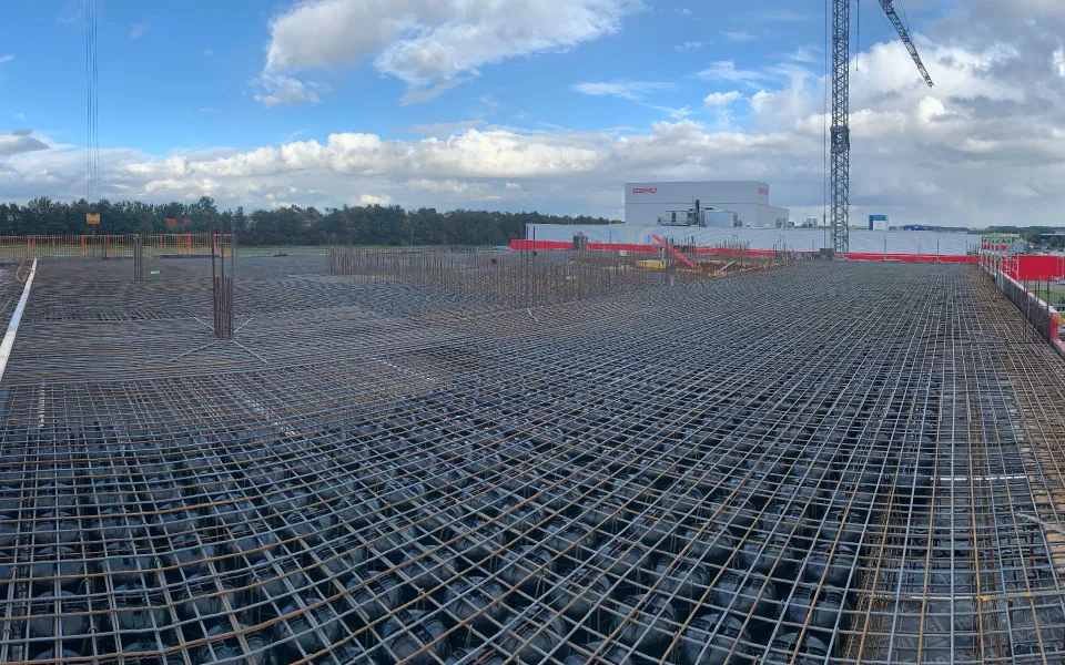 EEE Group supplied Unidome void former systems for GEMU Headquarters, Germany, a commercial office project. The solution enabled efficient floor spans, reduced structural weight, and supported sustainable and cost-effective construction.