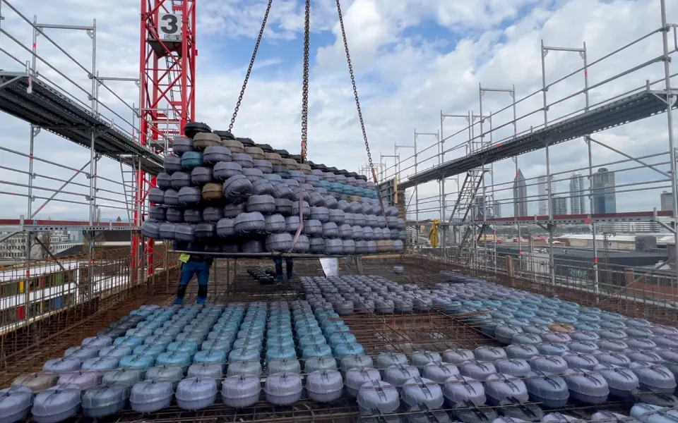 EEE Group supplied Unidome void former systems for Sky One Offices, Germany, a commercial office project. The solution enabled efficient floor spans, reduced structural weight, and supported sustainable and cost-effective construction.