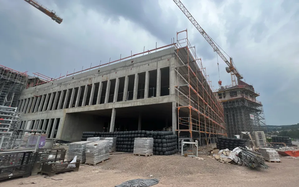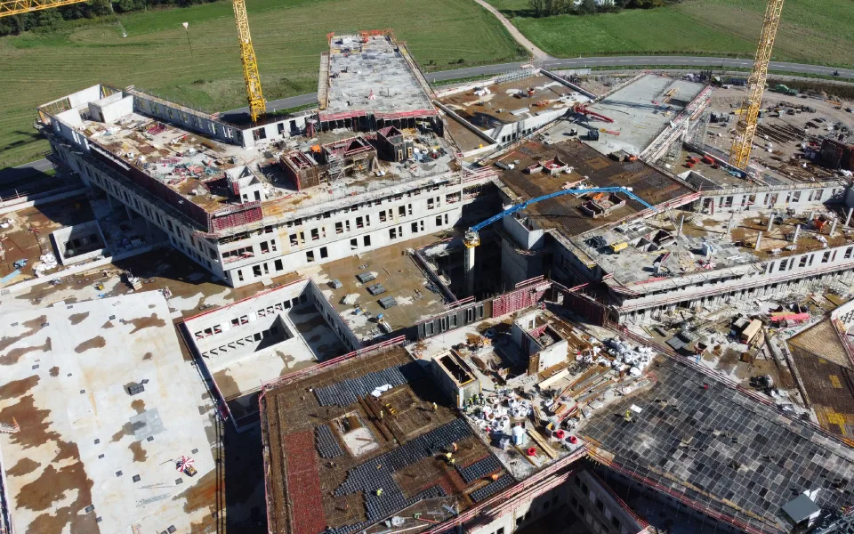 EEE Group supplied Unidome void former systems for Central Hospital Lorrach, Germany, a commercial office project. The solution enabled efficient floor spans, reduced structural weight, and supported sustainable and cost-effective construction.